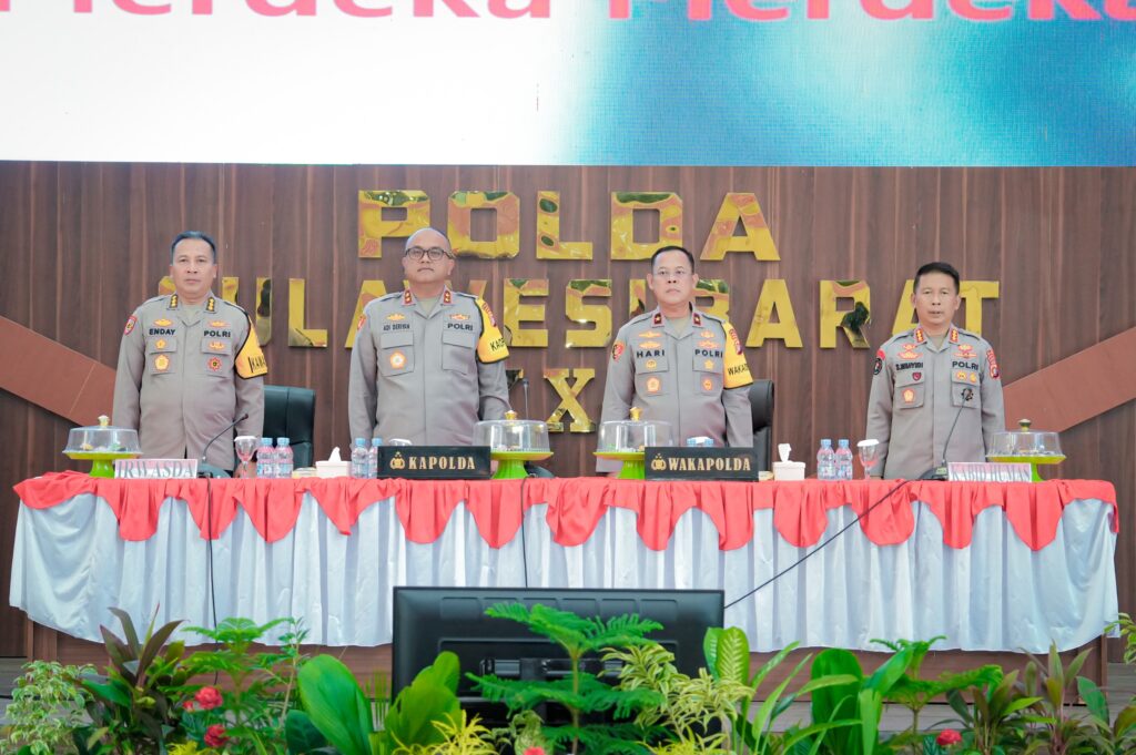 MAMUJU, SULBAR INFO – Dalam kegiatan rilis akhir tahun, Kapolda Sulbar Irjen Pol Adi Deriyan Jayamarta memaparkan capaian prestasi pada penanganan kasus kejahatan hingga lalu lintas, prestasi dan punishment serta inovasi pelayanan kepada masyarakat sepanjang tahun 2025, Senin (29/12/25) di Aula Marannu.