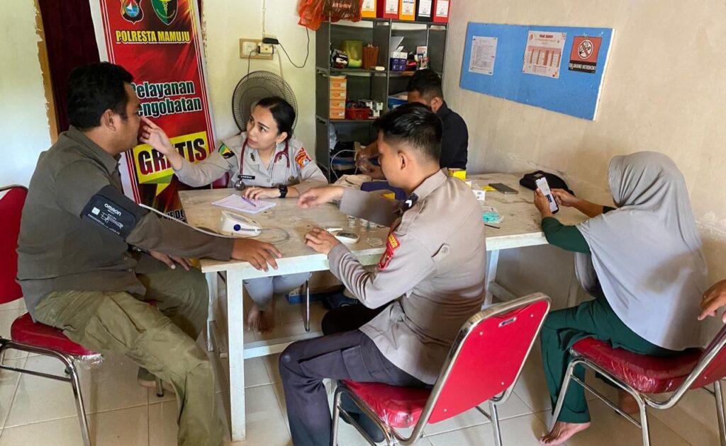 Kegiatan pelayanan kesehatan ini dipimpin oleh Kasi Dokkes Polresta Mamuju dr. Putri Sari Maryska Meliala bersama personilnya