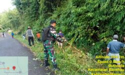 Koramil 1418-05/Kalumpang Laksanakan Karya Bakti Pembersihan Pinggir Jalan di Desa Bonehau