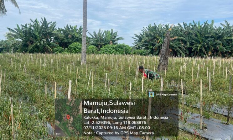 Mamuju – Dalam rangka mendukung program ketahanan pangan nasional, personel Koramil 1418-03/Kalukku melaksanakan kegiatan perawatan tanaman cabai dan pemeliharaan ikan nila di lahan milik Kodim 1418/Mamuju yang terletak di Dusun Taraweh, Desa Beru-beru, Kecamatan Kalukku, Kabupaten Mamuju, Jumat (11/7/2025).