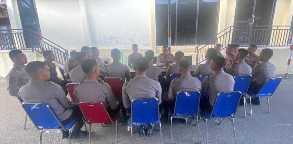 Mamuju – Wakapolresta Mamuju, AKBP Arianto memberikan petunjuk dan arahan kepada bintara remaja yang baru saja dimutasi ke Polresta Mamuju di samping Aula Polresta Mamuju. Rabu, 15 Januari 2025